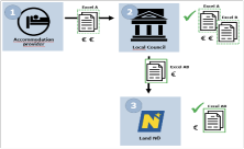 Every month, accommodation providers submit their data to their local council by filling out and submitting a paper form or emailing an Excel form. . Payments can be made to the council by bank transfer or in cash. The data submitted about the tax includes the number of overnight stays and exemptions per month, and the amount paid to the local council; no personal information about the guests is provided.